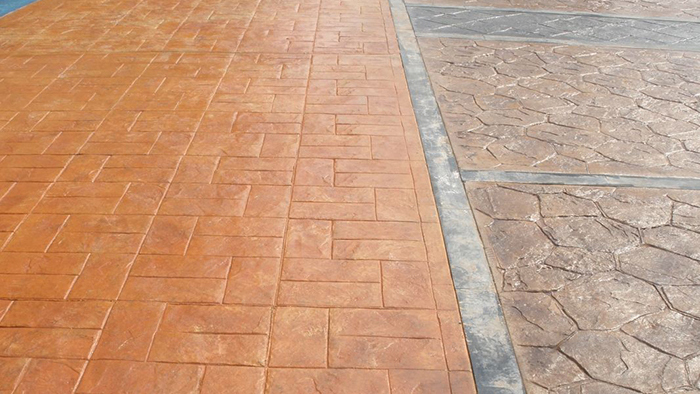 彩色藝術地坪又稱藝術地坪,壓模地坪,是用彩色的色粉散在初凝的水泥表面(miàn),然後(hòu)用酸著(zhe)色劑給地面(miàn)著(zhe)色的一種(zhǒng)地坪。彩色藝術地坪采用特殊耐磨礦物爲骨料純天然無機顔料及聚合物添加劑合成(chéng)的彩色地坪硬化劑,通過(guò)壓模、整理、密封處理等施工工藝使混凝土表面(miàn)産生不同凡響的石質紋理和豐富的色彩效。